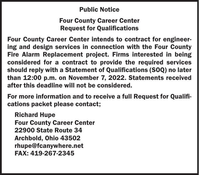 Web The Job Placement Center is a comprehensive communication center for business and our students. Web Four County Career Center 22-900 State Route 34 Archbold OH 43502 419-267-3331 1-800-589-3334 Fax. It encompassed approximately 1700 square miles.